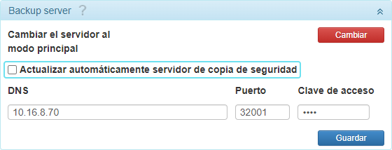 | Cambiar el servidor al modo de copia de seguridad | Esta opción permite cambiar el servidor de copia de seguridad al modo del servidor principal. Vea más detalles aquí. |