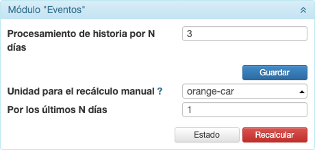 La opción Procesamiento de historial por N días permite especificar la antigüedad máxima de los mensajes válidos para el procesamiento de datos en tiempo real. Es decir, los mensajes recibidos de la caja negra no deben tener más de N días de antigüedad. En caso contrario, no se generan datos a partir de estos mensajes.
