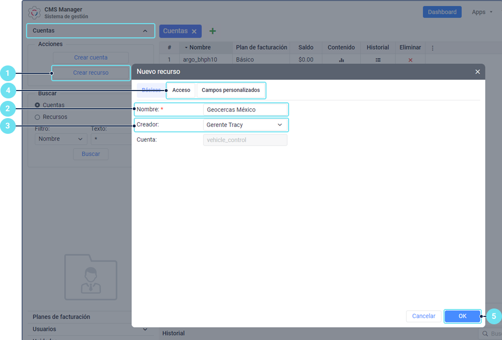 En el campo Cuenta se indica automáticamente la cuenta a la que pertenece el creador escogido. Por lo tanto, el recurso creado pertenecerá a esta cuenta.