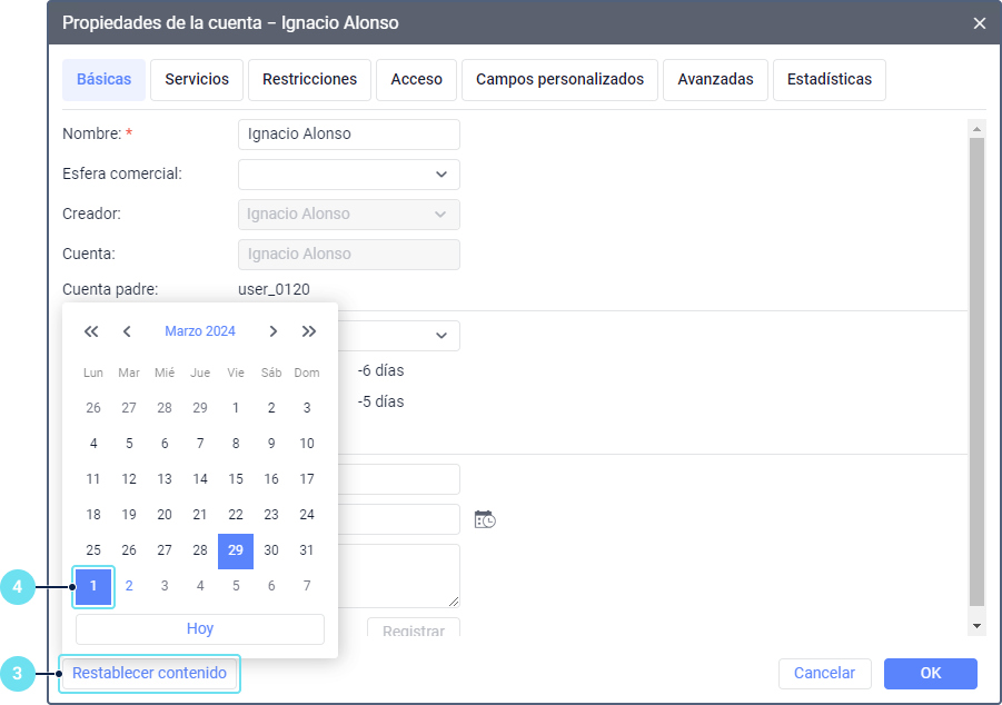 - de la cuenta: para restablecer el contenido del recurso con el mismo nombre de la cuenta que se ha creado automáticamente al crear la cuenta;