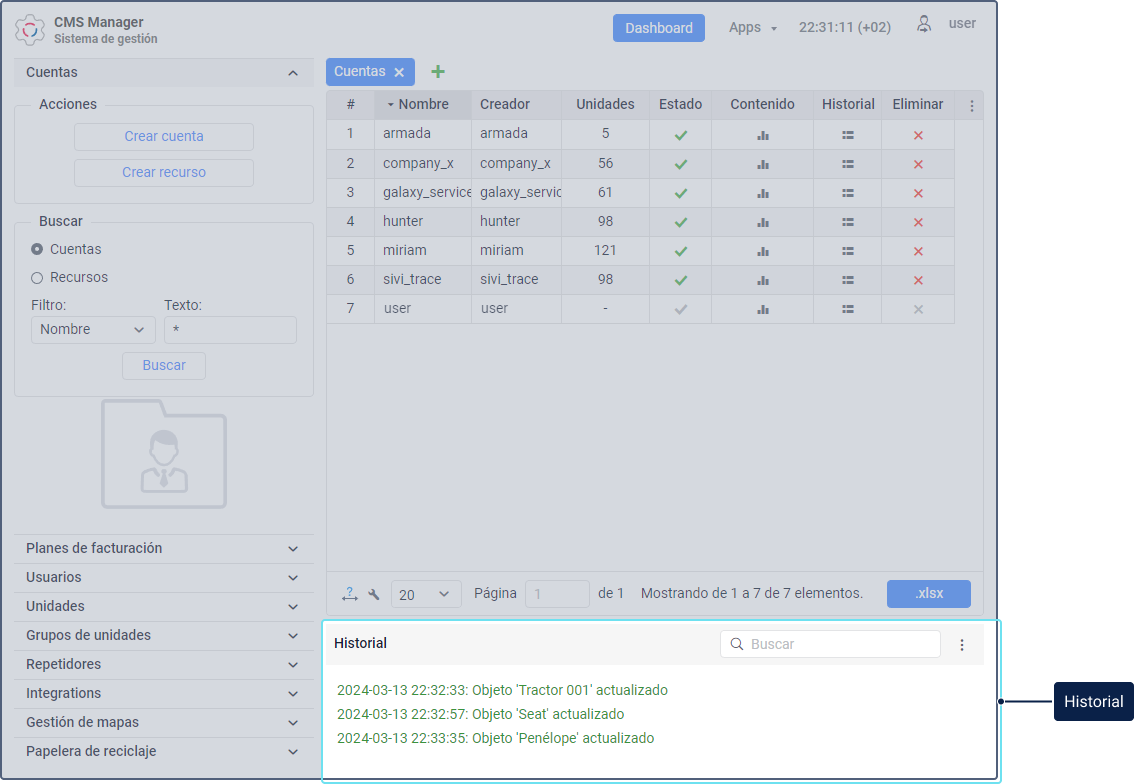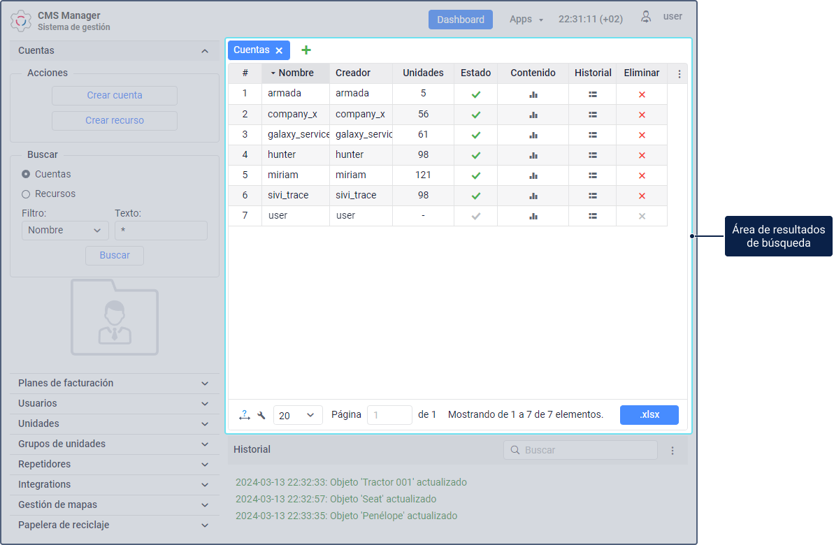 La interfaz del sistema tiene los siguientes componentes básicos: