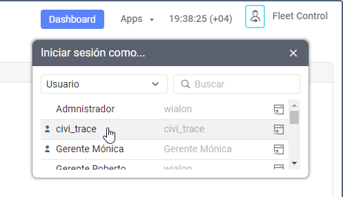 - icono para entrar bajo el nombre de otro usuario;