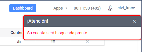 Los avisos sobre el bloqueo de la cuenta no se muestran al usuario creador de la cuenta de nivel superior.