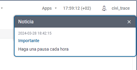 En la barra superior, debajo del nombre del usuario, se pueden mostrar mensajes informativos enviados por el administrador del servicio. Para recibirlos, el servicio Mensajes informativos debe estar activado para la cuenta.