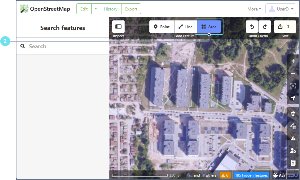 - Utilice el campo de búsqueda o navegue en el mapa para encontrar el área que desea editar.