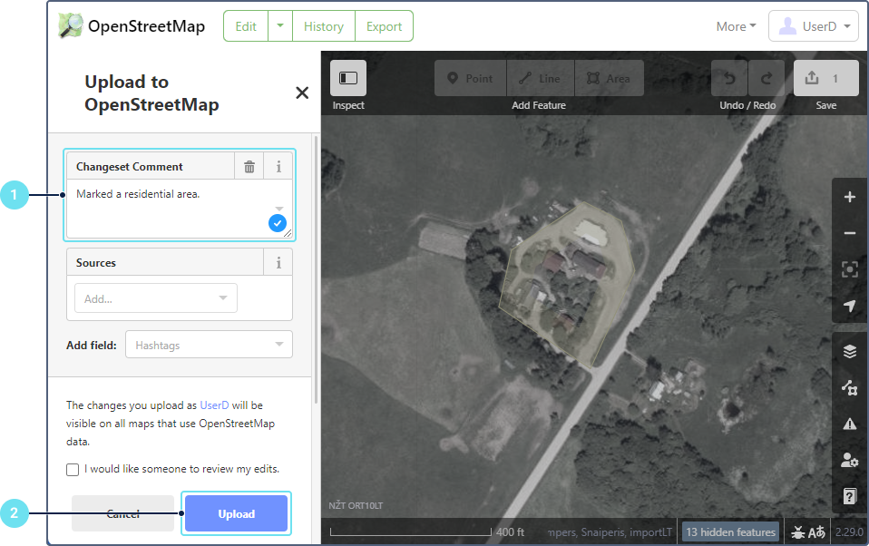 Revise cuidadosamente sus cambios y escriba un comentario para que otros usuarios de OpenStreetMap puedan entender qué se ha cambiado.