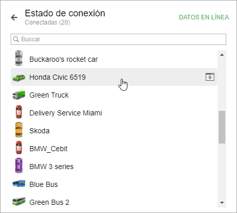Para encontrar unidades por nombre, utilice la búsqueda dinámica encima de la lista. Haga clic en la línea con la unidad para abrir su miniventana.