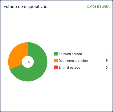 Al colocar el cursor sobre un sector de la gráfica, se muestra el porcentaje del número total de dispositivos que pertenecen a la categoría. A la derecha de la gráfica está la leyenda que indica qué categoría representa cada color y el número correspondiente de dispositivos.