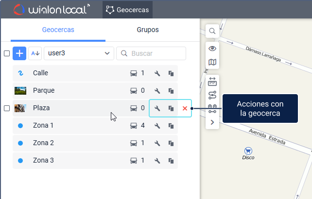 - realizar operaciones en la lista de geocercas: modificar, copiar, eliminar;