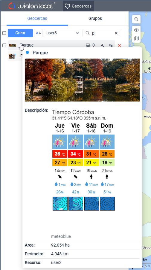 - visualizar la información en descripciones emergentes de geocecercas.
