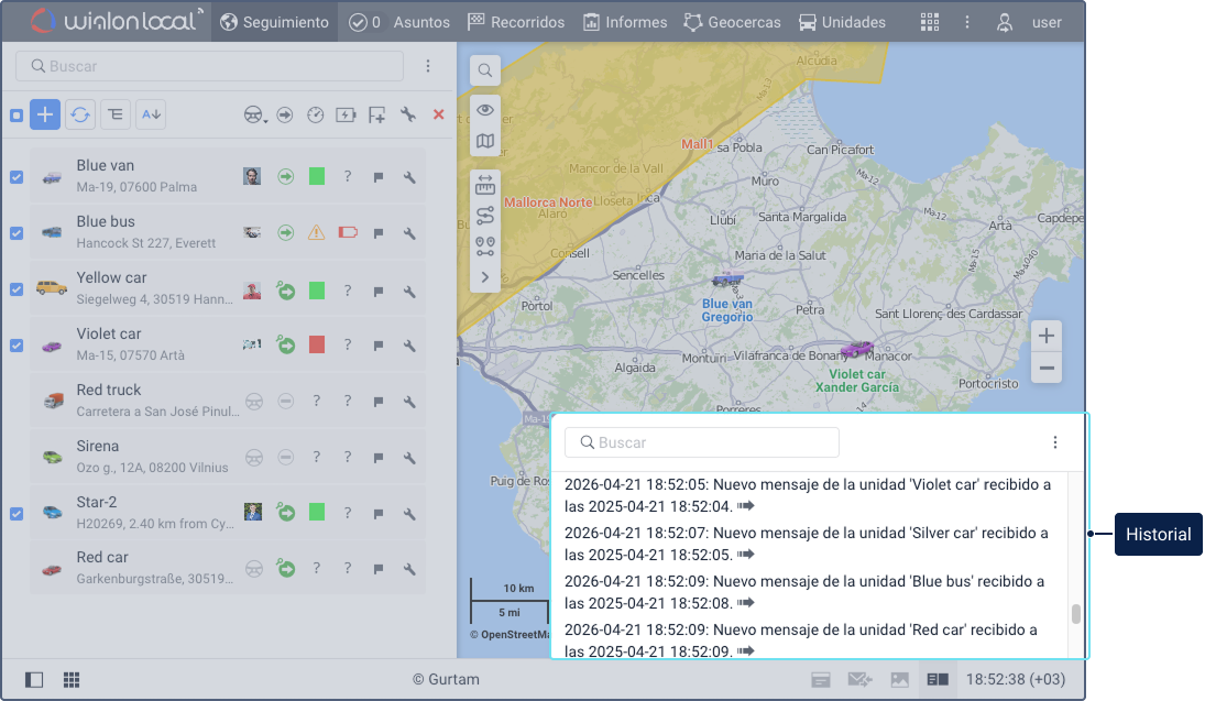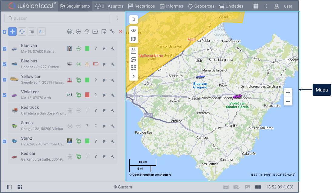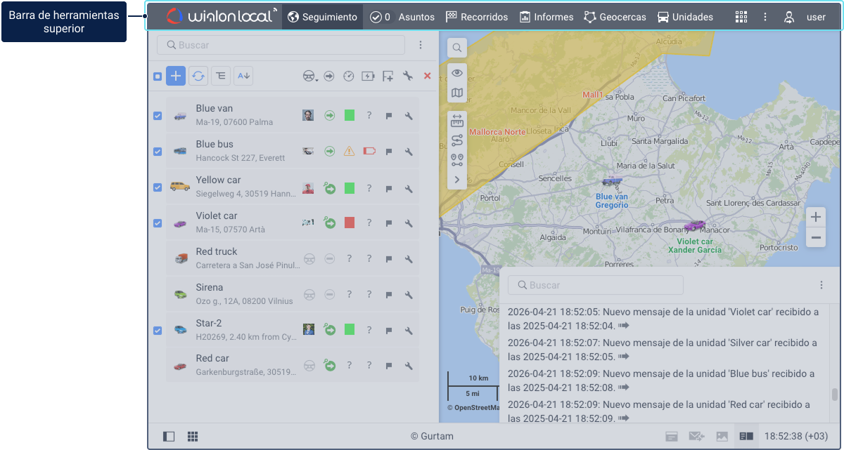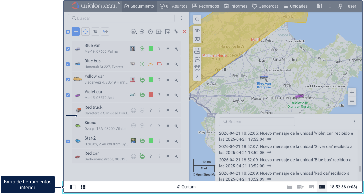 La interfaz del sistema de rastreo se personaliza y se adapta a diversas necesidades. Puede activar las pestañas, opciones y botones necesarios para su trabajo en CMS Manager (a través de los servicios) y en el propio sistema de rastreo.