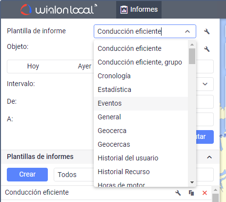 - en informes para precisar al conductor, sensor, evento (infracción), ruta o su geocerca y durante la selección de geocercas;