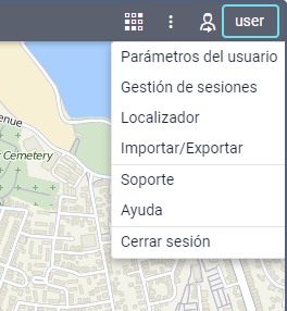 Para abrir el menú de usuario, haga clic en el nombre de usuario en la barra superior.