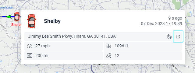 Además de la descripción emergente, se puede recibir información adicional sobre una unidad al apretar su icono en la lista de trabajo de la pestaña Seguimiento (tanto en el modo de unidades, como en el modo de grupos de unidades). Su contenido también se ajusta en los parámetros de usuario.