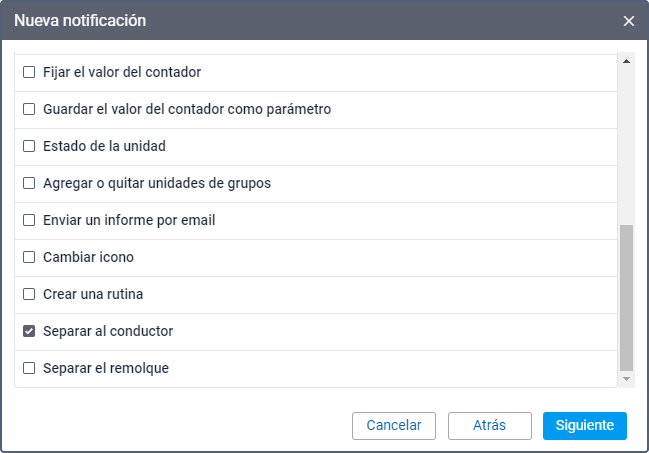 Para este modo de notificación se requiere el derecho de acceso Crear, modificar y eliminar remolques al recurso al que pertenece el conductor.