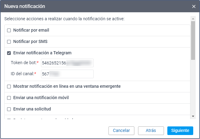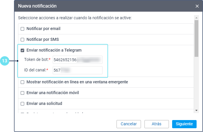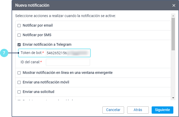 Para configurar el envío de notificaciones a un canal privado en Telegram, realice los siguientes pasos: