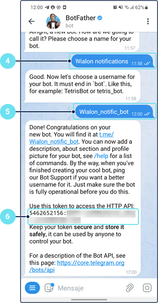 Indique el token en el campo Token de bot.