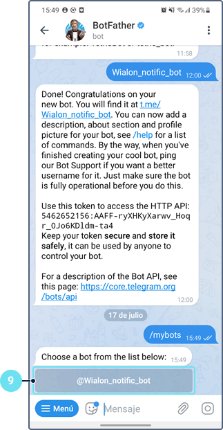 con la clave del bot. -