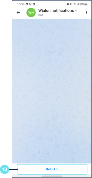 Apriete el botón Iniciar. Después se muestra el ID del usuario. Para conocer el ID de un otro usuario, envíe cualquier mensaje en su nombre al bot.