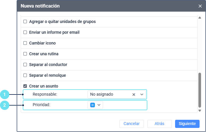 - Seleccione la prioridad que debe tener el asunto al crearse.