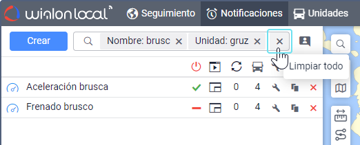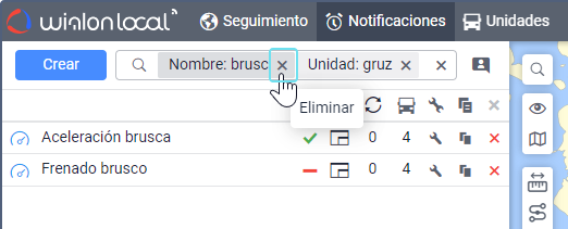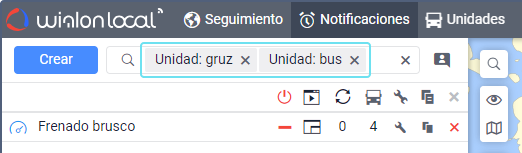 | Unidad | Nombre de la unidad. Cuando se aplica este criterio, en la lista se muestran las notificaciones en las propiedades de las cuales está escogida la unidad indicada. También se muestran las notificaciones creadas para un grupo de unidades si la unidad indicada pertenece al mismo. Una notificación puede ser creada para varias unidades. Para especificar varias unidades, debe añadir este criterio para cada unidad. ![]() |