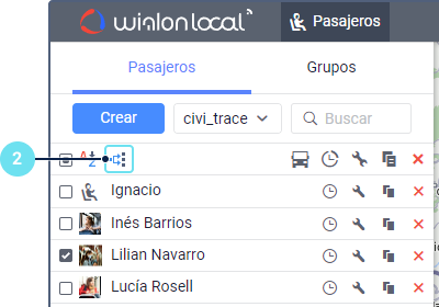 En la pestaña Pasajeros, haga clic en el icono