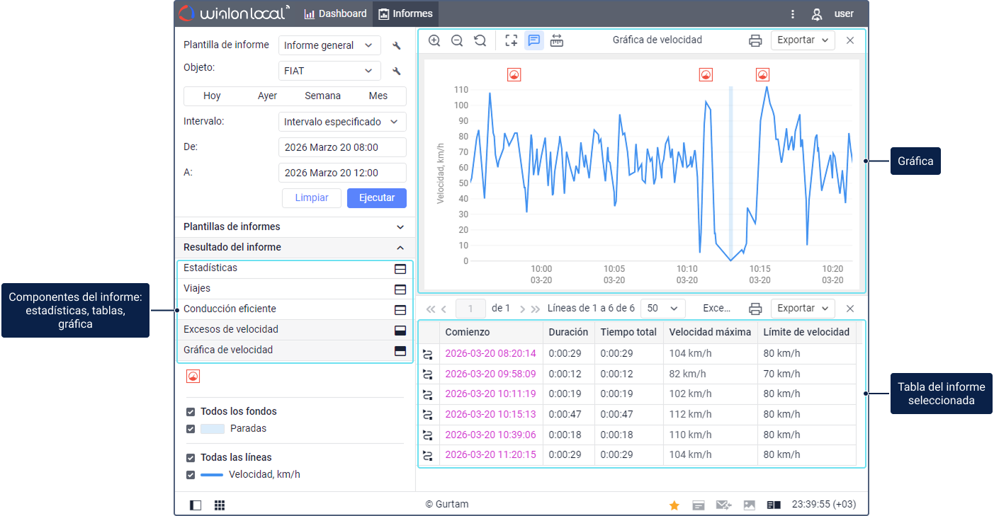 Con la ayuda de los informes, es posible combinar y analizar todos los datos disponibles sobre unidades, conductores y otros objetos del sistema de una manera que le resulte cómoda.