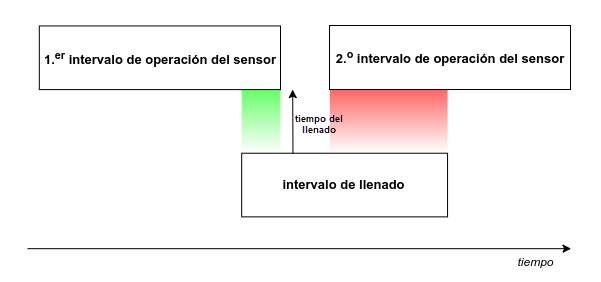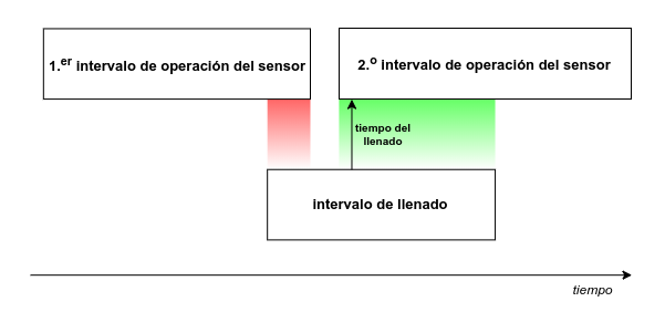 La hora (el momento del tiempo) del llenado se calcula dinámicamente en cada situación concreta a base de los datos de los sensores disponibles.