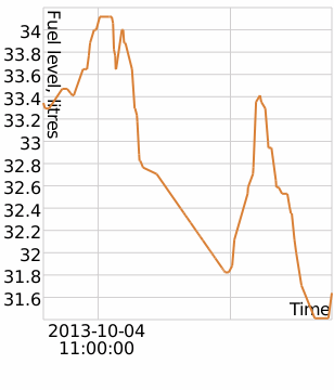 - el trabajo en ralentí será representado por una caída vertical del nivel de combustible (ya que no hubo aumento del kilometraje);