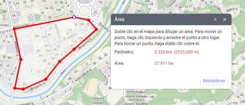Esta herramienta permite determinar el perímetro y área de las zonas marcados en el mapa.