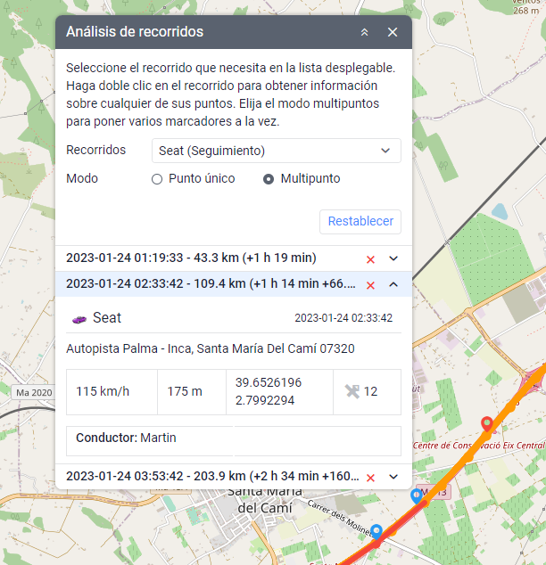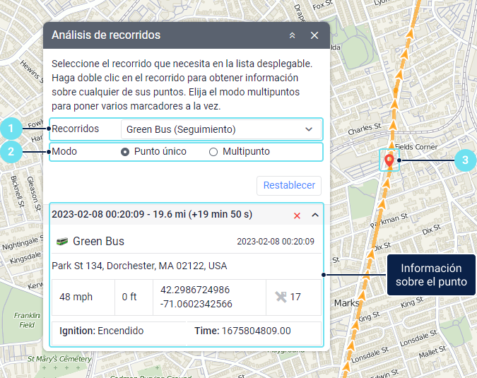 Esta herramienta permite obtener la información detallada sobre los puntos del recorrido. Antes de iniciar, tiene que visualizar el recorrido de la unidad utilizando uno de los siguientes métodos: