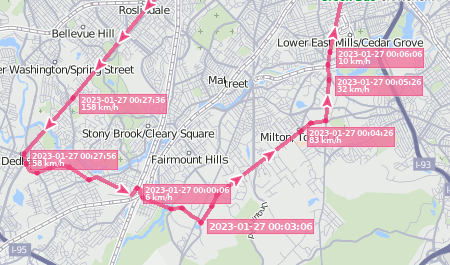 ). Si la opción Detección de viajes estaba activada al solicitar el recorrido o estaba escogida la opción del color Por viajes, este marcador indica el punto inicial y final de cada viaje dentro del recorrido.