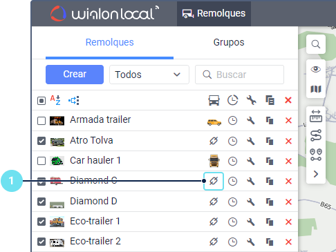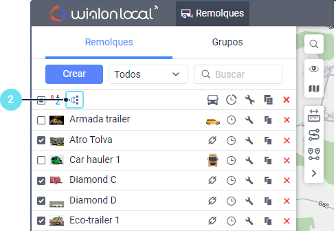 al lado del remolque necesario en la lista de remolques o sus grupos. El icono está inactivo (