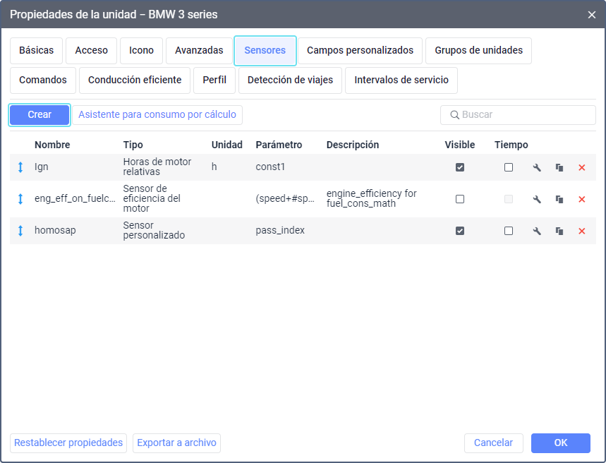 Para todas las unidades a las que quiere asignar automáticamente remolques cree un sensor de tipo Asignación de remolque. Se hace de la misma manera que el sensor de tipo Asignación de conductor.