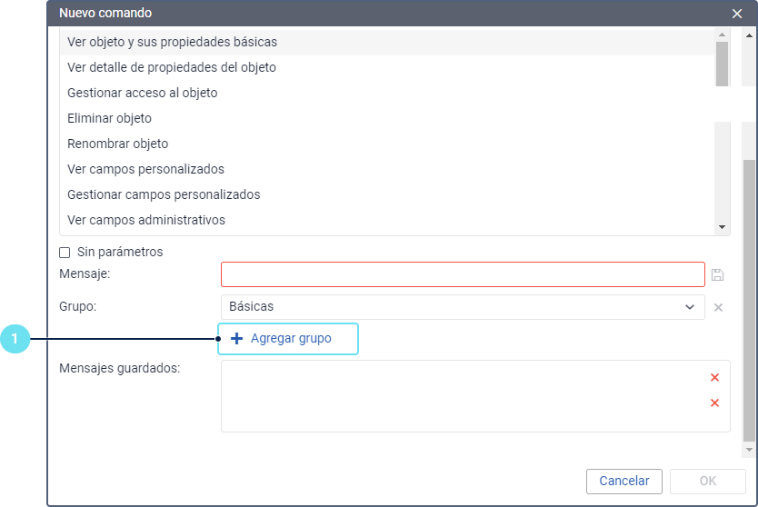 A la hora de configurar el comando Enviar mensaje personalizado, se puede crear grupos y agregar mensajes. Esto permite encontrar el mensaje necesario rápidamente antes de enviar el comando.