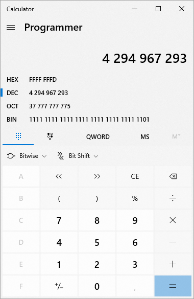 Abra la calculadora e introduzca cualquiera de los valores incorrectos en modo decimal (DEC).