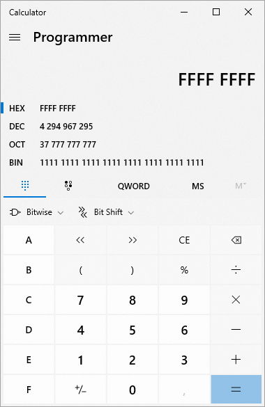 Cambie al modo hexadecimal (HEX) y cuente la cantidad de caracteres en el número resultante. Si la cantidad de caracteres no es 2, 4 u 8, redondéela hacia arriba (por ejemplo, 5 debe redondearse a 8). En la imagen a continuación hay 8 caracteres en el número.