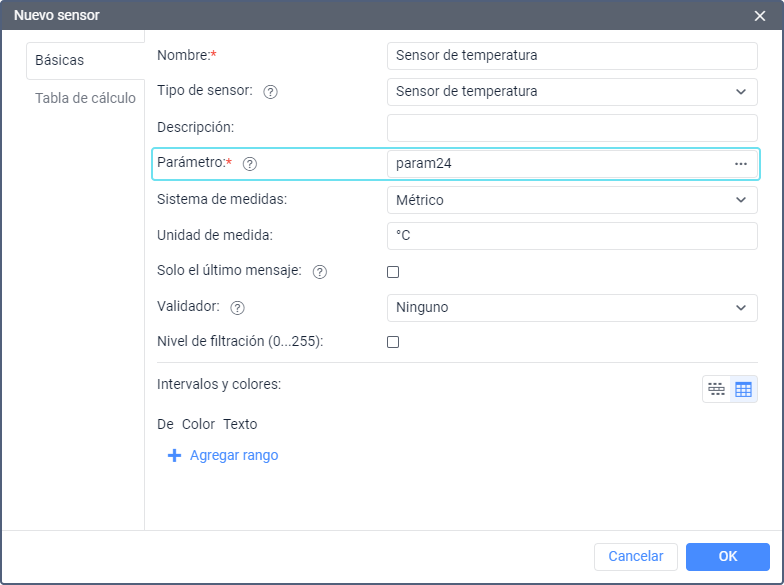Como parámetro del sensor, indique aquel cuyos valores hay que convertir.