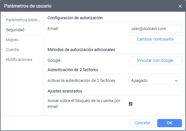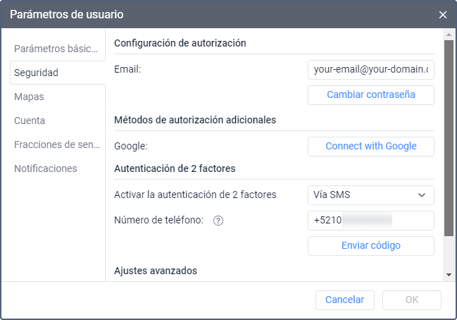 A petición, puede configurar la autorización utilizando servicios de terceros a través de Auth0. Para obtener más información y enviar su solicitud, póngase en contacto con support@wialon.com.