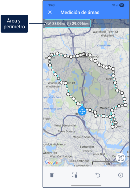 - Añadir un punto: Toque cualquier lugar del mapa para colocar el primer punto. Siga tocando para añadir más puntos y delimitar la forma.