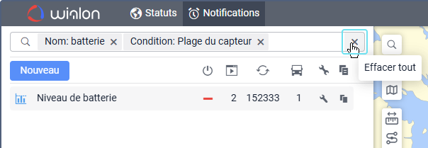 La liste des notifications est filtrée dynamiquement afin qu’elle n’affiche que les notifications qui correspondent à votre requête. Pour effacer la requête, cliquez sur l’icône
