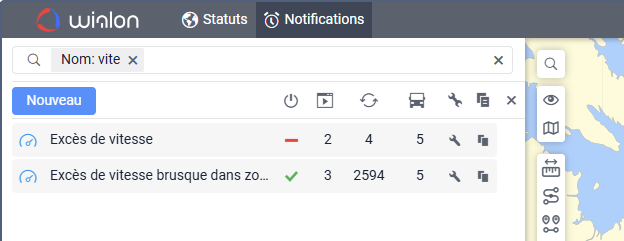 Par exemple, si vous sélectionnez le critère Nom, la liste affichera toutes les notifications dont les noms contiennent les caractères « vite ».