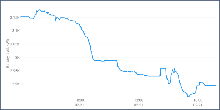 Le graphique montre la dépendance du niveau de la batterie par rapport au temps (kWh/temps). Le graphique est traité en tenant compte du type de filtrage sélectionné dans les paramètres du capteur.