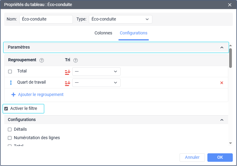 Activer le filtre