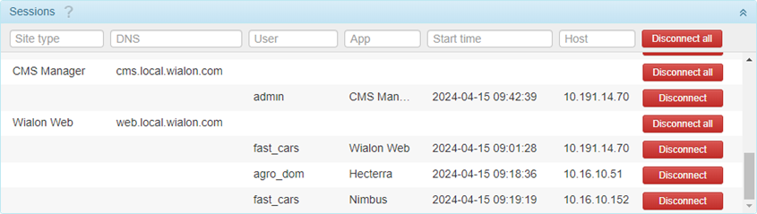 | App | Le nom de l’application avec laquelle l’utilisateur travaille. Il peut s’agir de solutions de niche qui utilisent le SDK du site de la colonne Type de site ainsi que des sites qui fournissent SDK (Wialon Web et CMS Manager). |