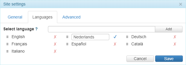 Pour renommer une langue, cliquez dessus, saisissez un nouveau nom et cliquez sur l’icône