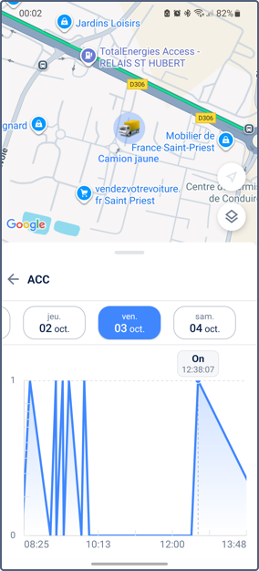 Les détails de l’unité fournissent des données historiques des capteurs dans un format de graphique interactif. Cette fonctionnalité vous permet de surveiller l’activité des équipements, d’analyser les tendances et de diagnostiquer des problèmes, comme la surchauffe du moteur ou la baisse de carburant.