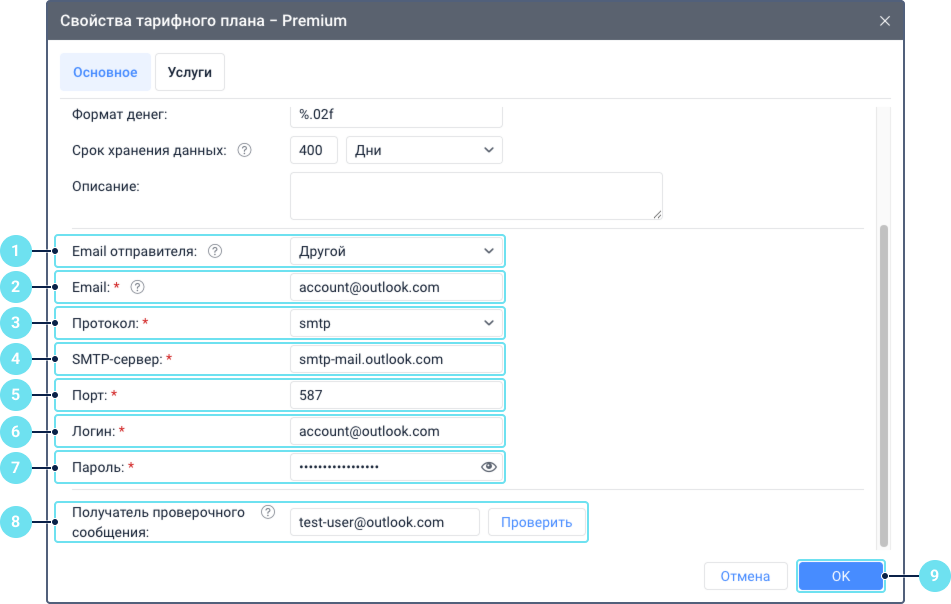 Настройка пользовательского SMTP-сервера на основе сервиса Outlook