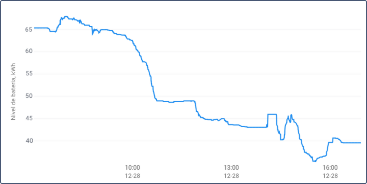 O gráfico mostra a dependência do nível da bateria em relação ao tempo (kWh/tempo). O gráfico é processado levando em conta o tipo de filtragem selecionado nas configurações do sensor.