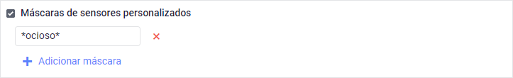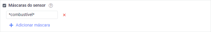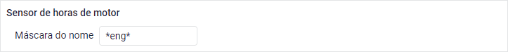 Nesse filtro é possível especificar uma máscara de nome para o sensor de horas de motor no campo Máscara do nome. A máscara pode ser utilizada no próprio relatório, caso existam colunas com as horas de motor, e também no filtro Horas de motor, se o mesmo estiver habilitado.